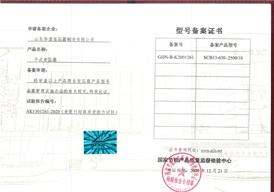 • 華盈變壓器廠國家高新技術企業